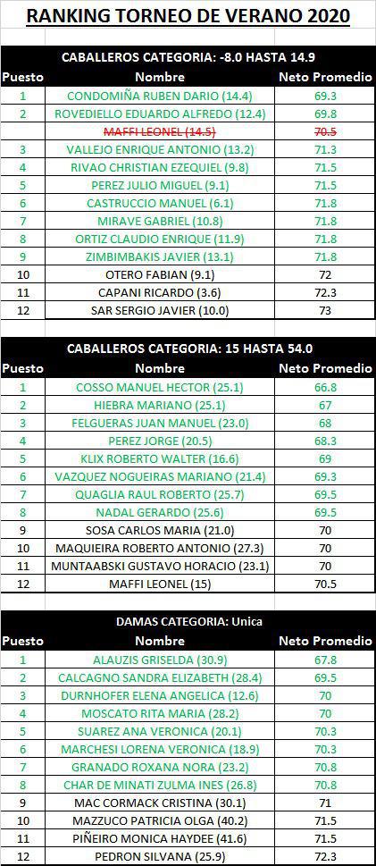 Les enviamos los resultados parciales de los rankings actualizados al día de la fecha.